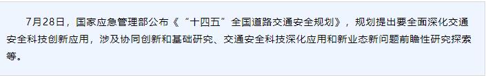 “十四五”全國道路交通安全規(guī)劃發(fā)布 將全面深化交通安全科技創(chuàng)新應(yīng)用